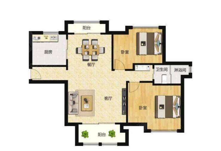 一层为宽阔客厅与餐厅,南北通透,配备中西双厨;