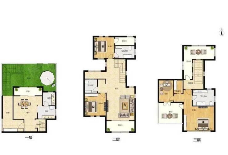 三层为套房设计,包含书房、衣帽间、卫浴、观景露台等全配套;