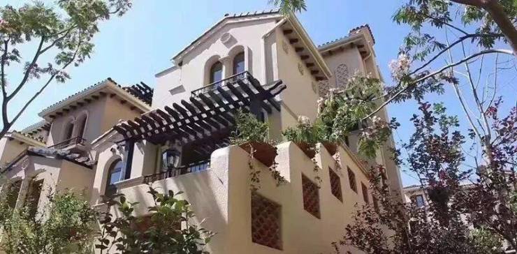 【同润•蓝美俊庭】采用南加州的建筑风格,外立面采用文化石和暖黄色涂料,搭配红色的筒瓦、烟囱、铁艺栏杆等建筑,尽现南加州原乡风情。