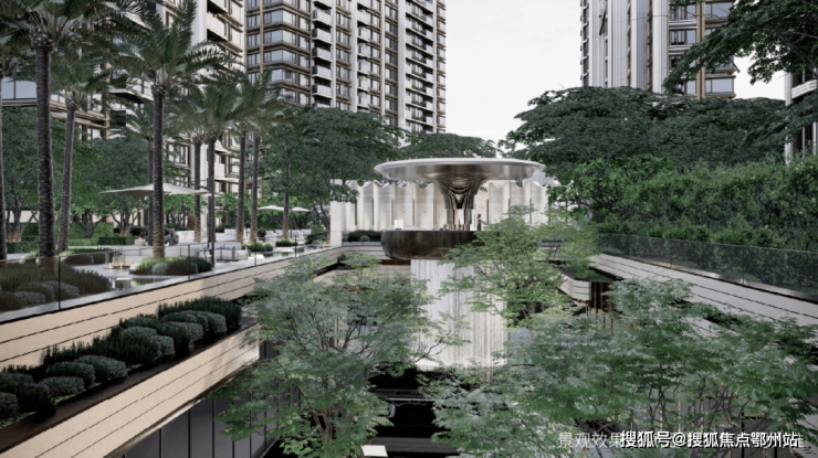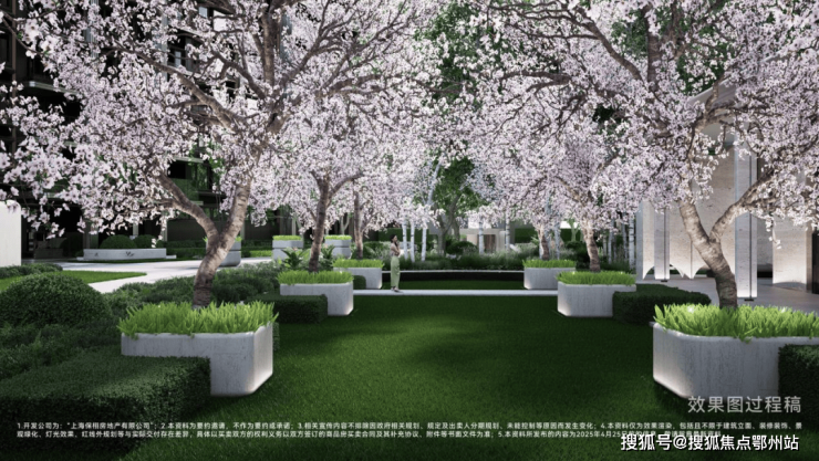 ④ 八大乔木主题林带。保利天奕在植物的选取上也非常考究,精选全球度假植物,打造了 八大乔木主题林带,呈现 四季不同景观。