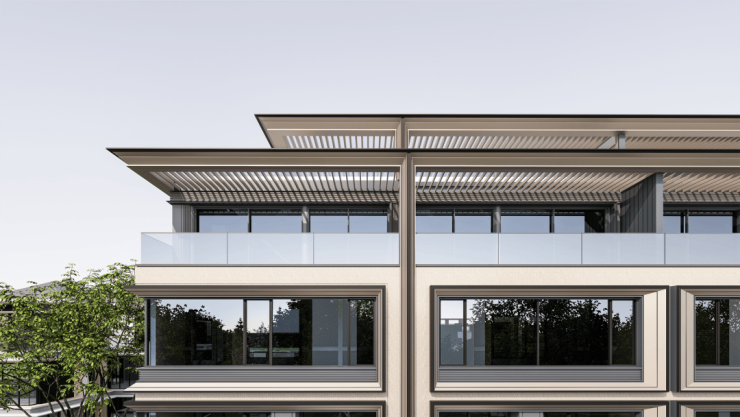 项目没有采取国贸的标准产品线,而是因地制宜融入广富林文脉,塑造全新的 “新江南学院派” 风格建筑。