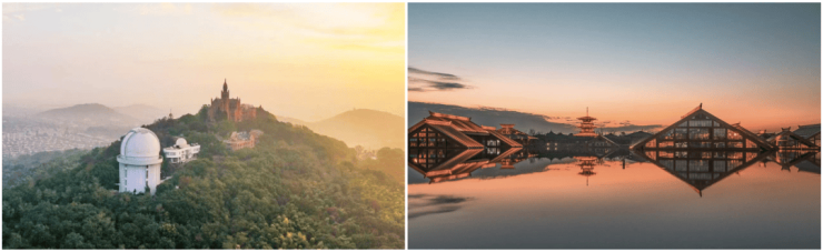 富林美学馆长度 超140米的平檐建筑 ,取自古代画作中的“平远”风格,创造出区域内最具江南意境的宽屏门楣。建筑两侧花繁叶茂,是在复现《富林春晓》这首诗中“花落风檐多”的意境。