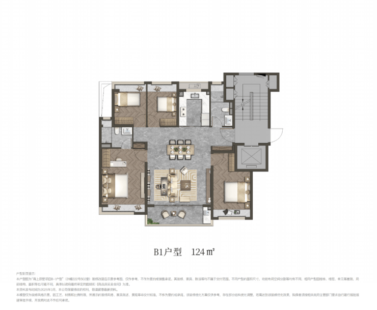 124m²:四房两厅两卫