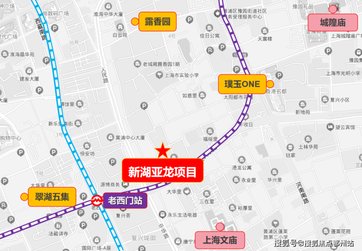 新湖亚龙项目 【上海壹号院】位于中华路以东、方浜中路以南、松雪街以西、复兴东路以北,是老黄浦区508-514街坊(亚龙地块)旧城区改造项目,2019年时出让,由新湖中宝拿下。
