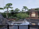 项目采用三段式入户: 一进辋川入画(主入口空间),二进:闲庭碎影(戏台庭院),三进:临风听湖(自然庭院)。入户大门屋顶采用唐代“重檐歇山顶”形式配上台基上的唐代建筑标志阑干,入院后有一副唐风画作,其次以亭台楼榭、理水叠山的中国园林意境,重现盛唐大明宫百花争艳,小桥流水,落叶如金的景观。社区景观层层递进,让住户置身其中,体验唐风山水。