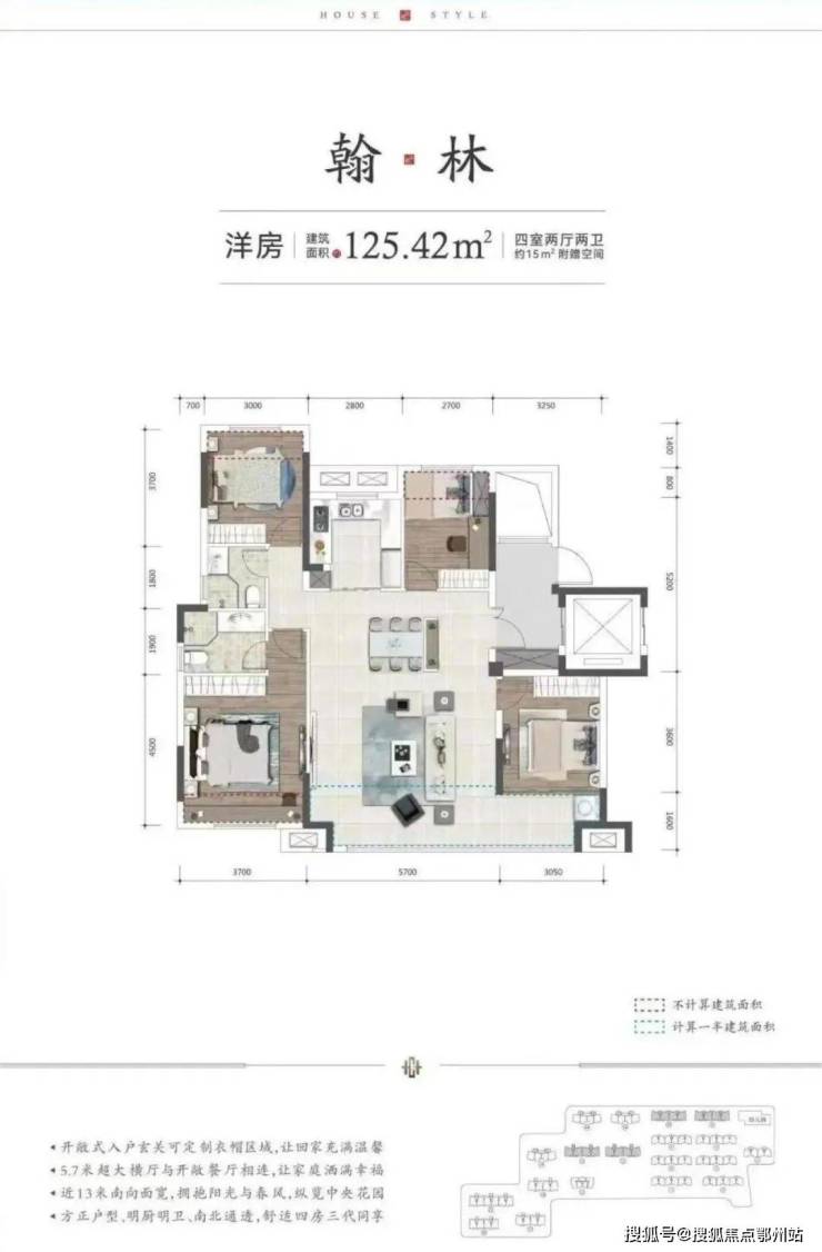 洋房:总高9F-10F,一梯两户,建面约125㎡