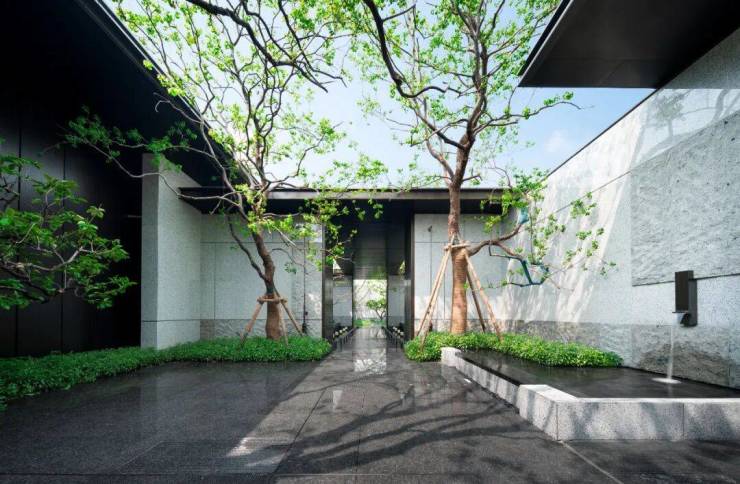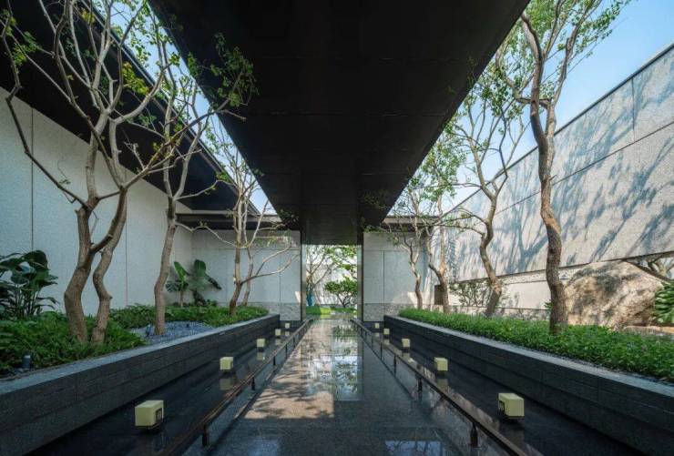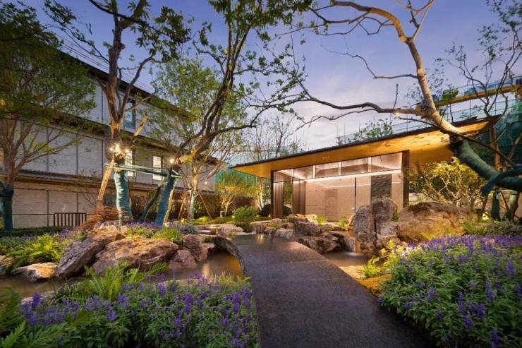 北区配备约3000㎡酒店式会所花园,地下会所承载艺术展示与社交功能;南区通过自然山水的礼序山石园林步入约1500㎡地上泛会所花园区。设计汲取古代文人雅士隐逸山林的空间意象,融入山、泉、林、台、石等元素,巧妙结合书院文化内涵与自然意境,营造富有东方哲思的景观体验。