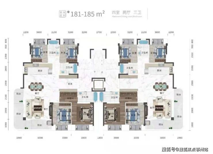 平层还有 建面约213㎡/225㎡三室三厅三卫约185㎡/220㎡四室两厅三卫 ,皆为豪宅尺度。