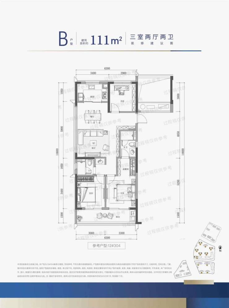 建面约111方三房两厅两卫边套户型,设计地极为优秀! 户型方正,三面采光,并且每个空间的采光面都比较大。U型厨房,餐客厅一体,全明卫,客卫干湿分离,还拥有超豪华主卧套房,与南次卧带连通跑道式阳台。此外,这个户型从入户玄关、客厅橱柜,到主卧的衣帽间等等,都预留了超大的收纳空间。