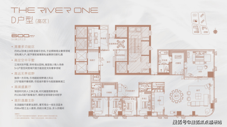 D户型(高区)约600㎡(5+1房3厅3卫)