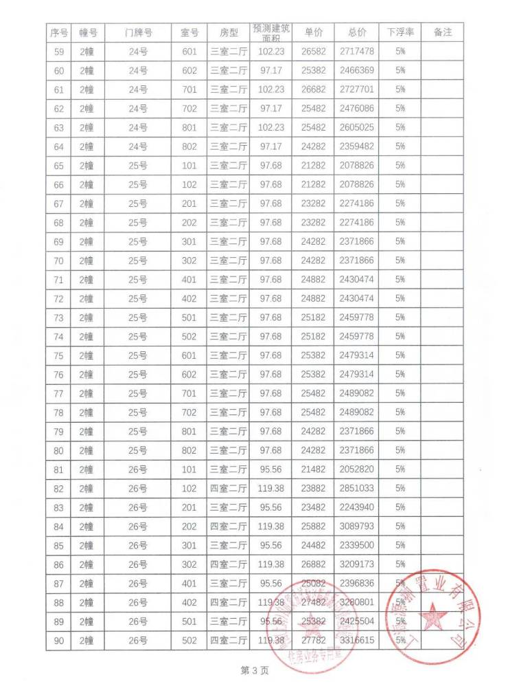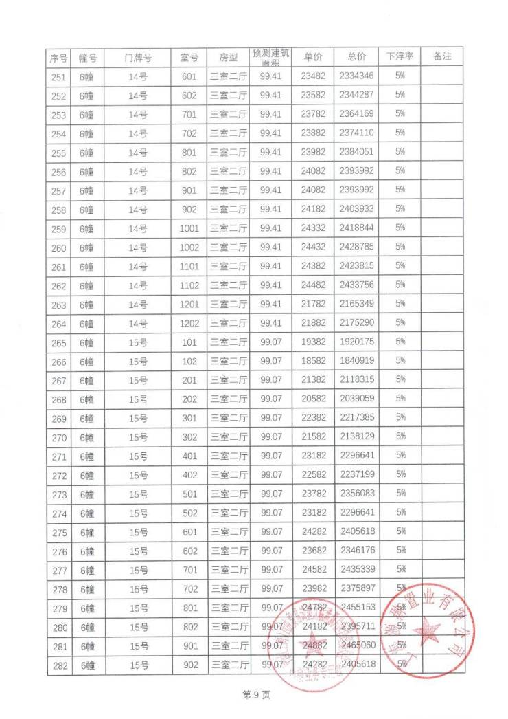 一房一价表