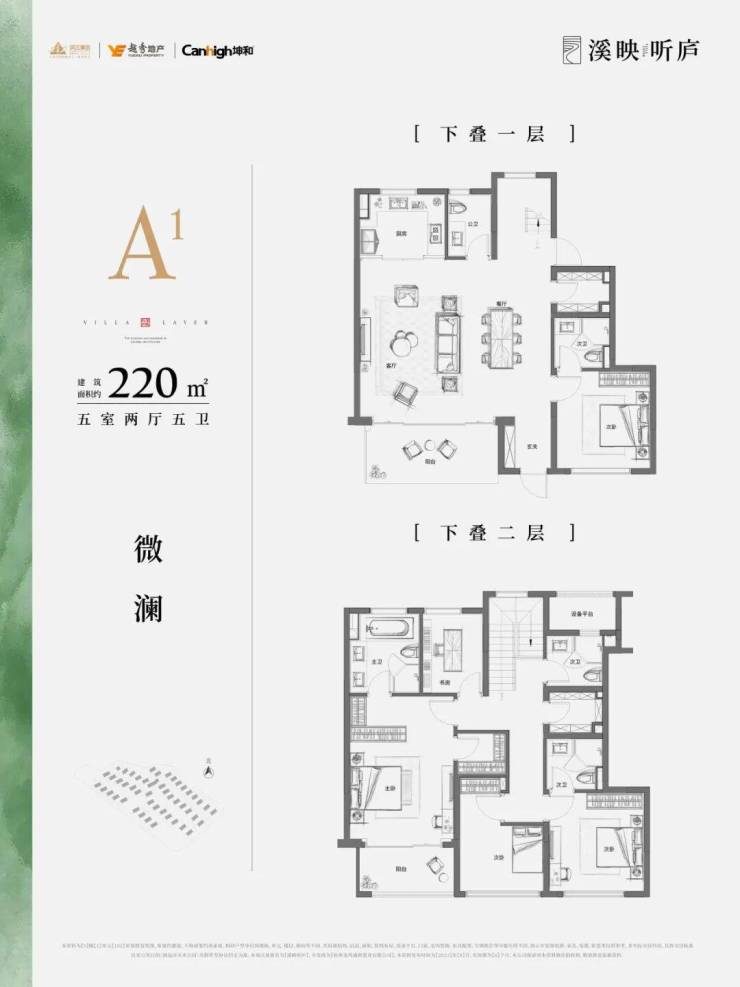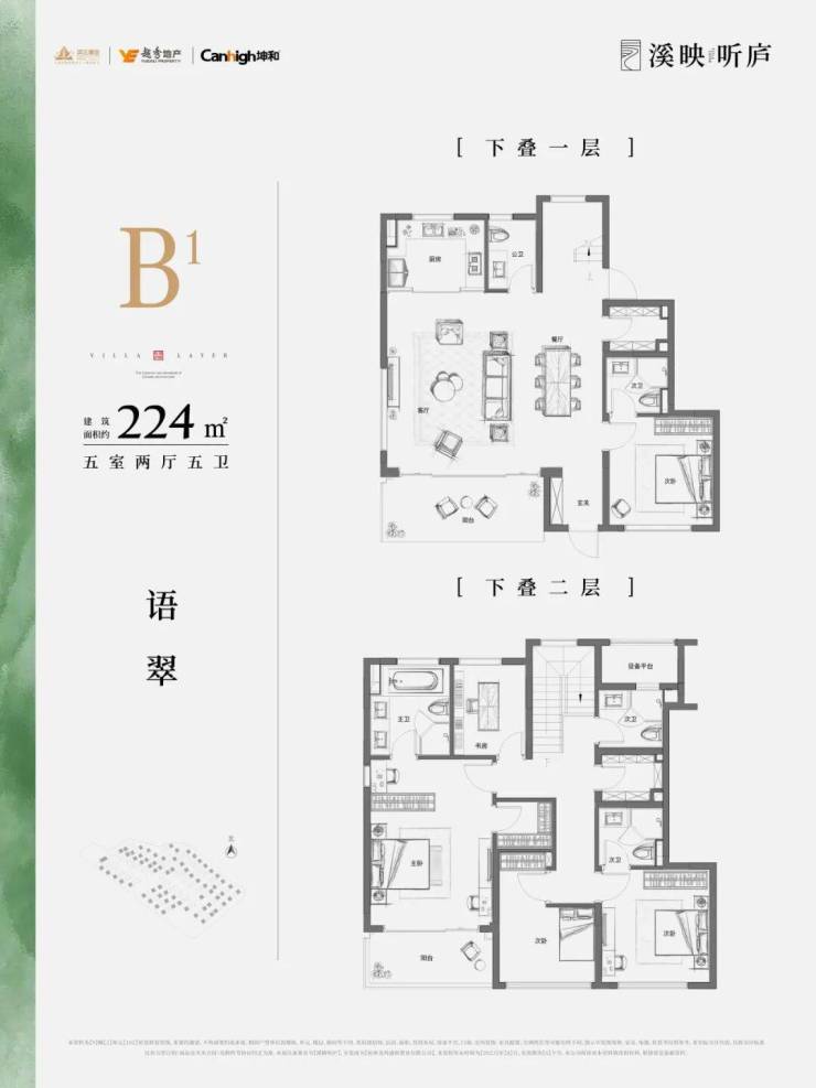溪映听庐采用了 错位 排布,将上叠客厅和老人套放到四楼,连通露台;卧室移到三楼,避免上下叠间作息不同,互相影响,也方便上叠业主更好欣赏茶山美景。一层除了派对式公区外,还有一个套房可以给到家中长辈居住,