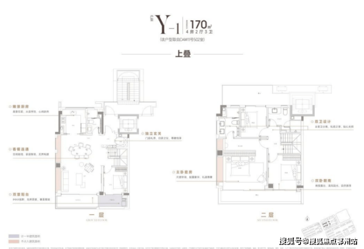 170m²上叠,南向双阳台+南北双露台: