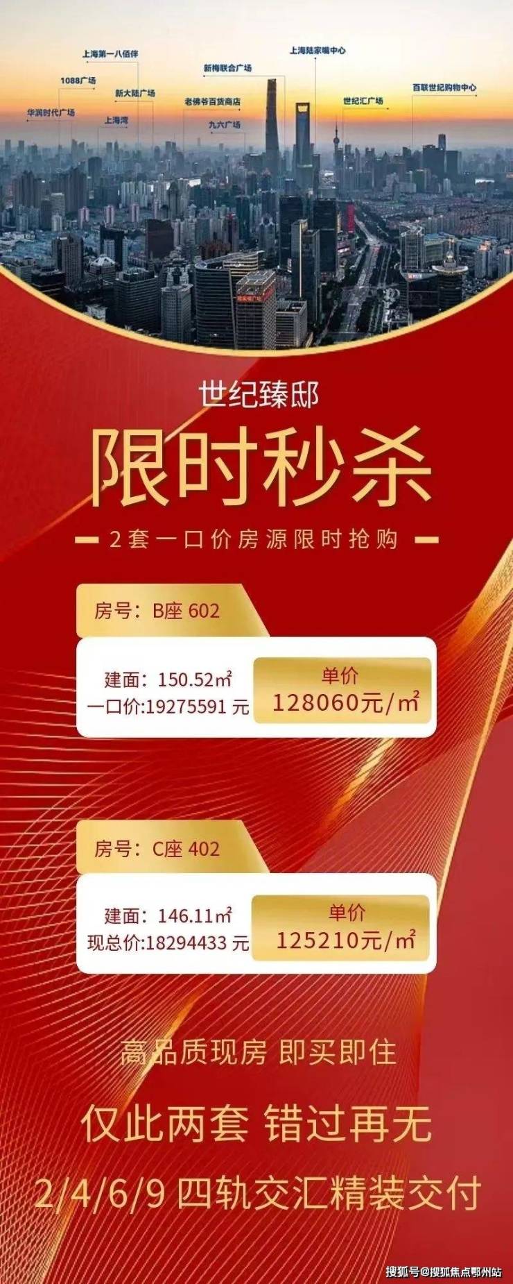 陆家嘴太古源!目前售罄第一批次:2024年12月15日 1.2号楼 50套 均价:16.9万/平米 触发积分 五年限售,世纪臻邸价格才12.5万/平,还有95折优惠+送车位真是在陆家嘴地区打着灯笼也找不到了!