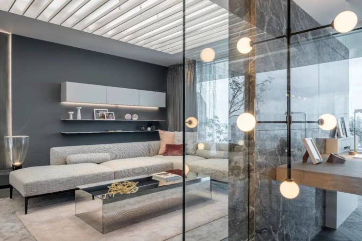 至于厨房, 引进奢华橱柜品牌Bulthaup(巴托普),通常来说,汽车原厂漆的烤漆喷涂需11道工序,而Bulthaup橱柜的环保高光烤漆工艺达12道。触感犹如钢琴琴键那般丝滑。