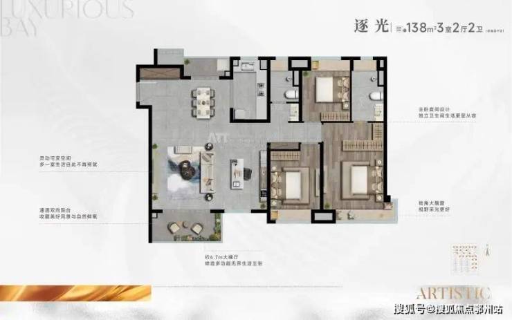 建面约99-139㎡ 精装高层,尽享奢阔面积和超高得房率,匠心研磨动线流畅的厨房、主卧套间、全屋收纳系统等一系列精质细节,主卧套间设计尽显从容优雅, 阔绰尺度灵活空间,满足家庭全周期成长。