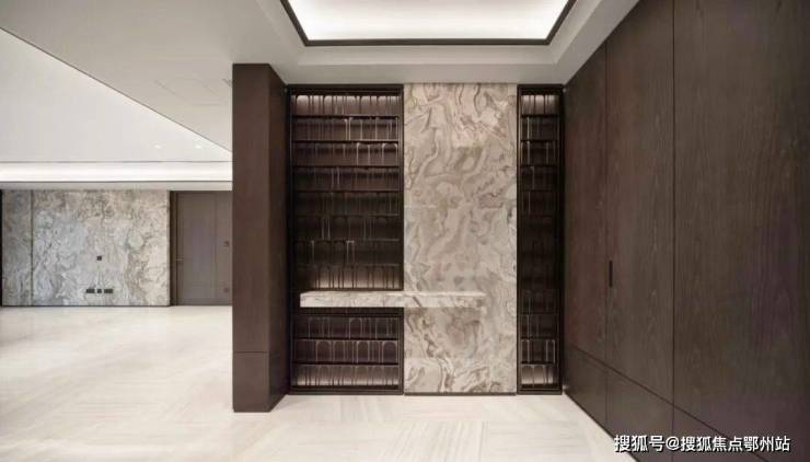 推开房门的刹那,尊贵感更是油然而生, 重工且精致的玄关背景墙,审美调性也很高。
