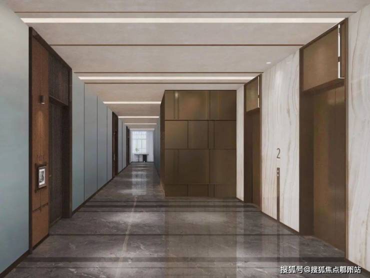▲朗阔公区艺术人文走廊配置中央空调,墙面装饰材料为高档艺术墙布,电梯厅装饰材料为高档天然大理石和质感金属,流动的艺术人文走廊,中央空调全覆盖,四季恒温。
