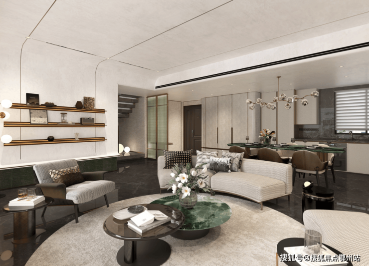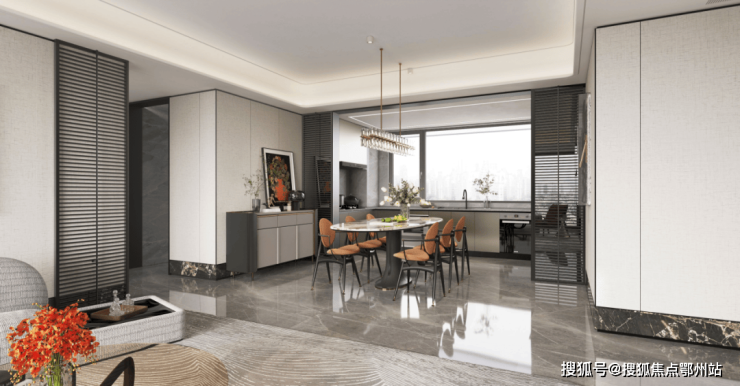 立面腰线等细节处则提炼汝窑 “金线”传奇符号,以还原精雅的繁复工艺,为建筑线条进行金线勾边,点睛强烈而隽永的美学仪式感;较高的窗墙比延伸视野边界的同时,呈现极简派超高颜值…诸如此类的精工细节不胜枚举,真正做到了坚持骨子里东方文化标签,用现代材料与传统技法相结合,打造出符合现代审美需求的高质人居产品。