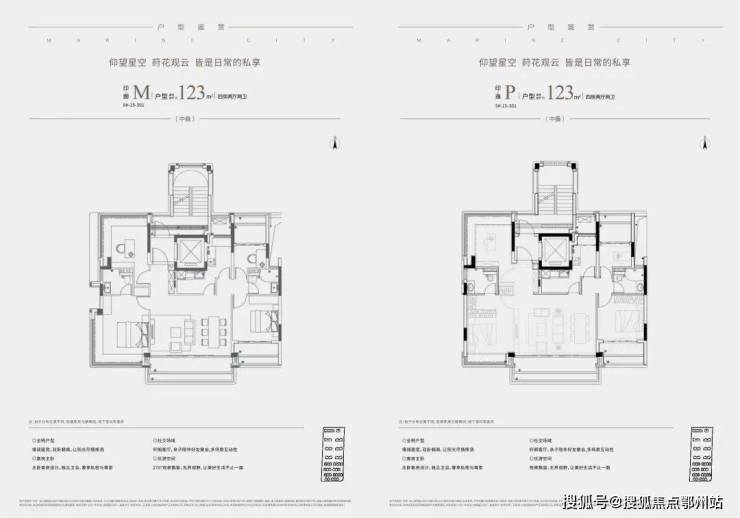而中叠(建面约123㎡)则集便利与尺度于一身:不仅配备独立电梯厅,更以约13.4米南向面宽、约6米宽厅及南北双270°转角飘窗,营造出宽幕视野与通透空间,体感媲美整层大平层,实得率几近“满格”。