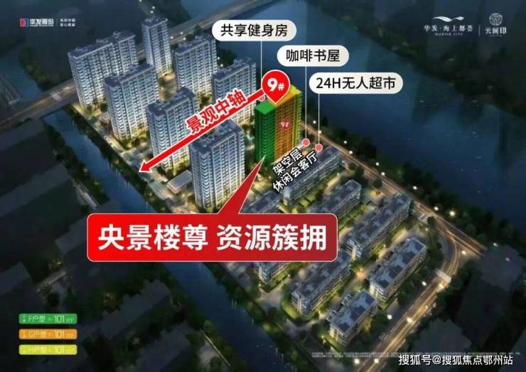 9号楼本就位于社区核心位置,不仅正对景观中轴,形成从江岸到园林的完整视觉通廊,更拥有俯瞰低密墅区的视野优势。