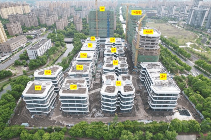 项目用地性质为c65科研用地,总占地面积66095平方米,总建筑面积215447平方米,容积率2.5。项目一期,占地50亩,由一栋研发办公楼、五栋双拼总部楼、四栋蝶形总部楼、一栋招商运营楼组成。园区内还设有约5400㎡下沉式商业广场,将引入商业配套,满足员工商务洽谈、休闲交流等需求。