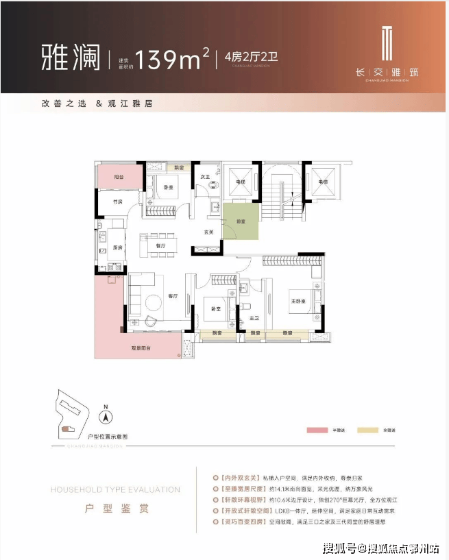 得益于低密, 每款户型得房率均高达95%以上 ,全四房设计,户户带独立电梯前厅。
