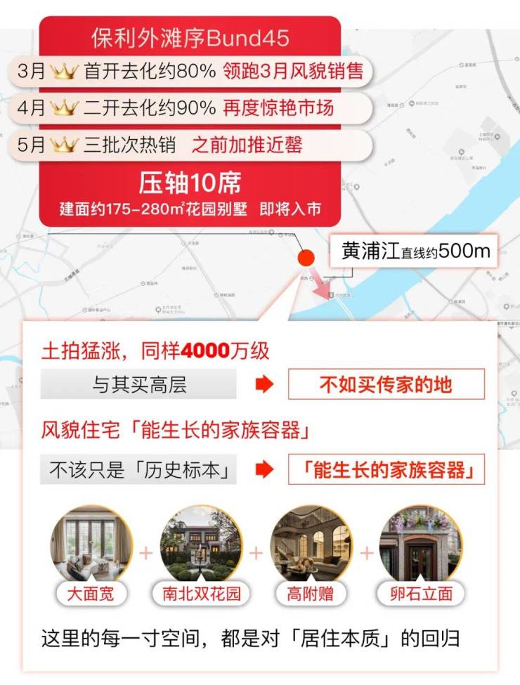 保利·外滩序BUND45售楼处电话:400-112-0302【售楼中心】保利·外滩序BUND45推出滨江风貌别墅,总价3500-6000万,容积率1.2,主打低密花园别墅,融合海派文化与匠心工艺,热销率超90%。