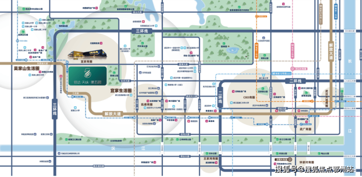 自驾:项目北临园博大道,周边有三环线、长丰大道高架、解放大道等主干道,出行可以很快上快速路,走解放大道可以直达硚口古田、宗关、武广等,长丰大道高架可以快速到CBD,走竹叶海立交可以直达临空港经济开发区、常青等地。