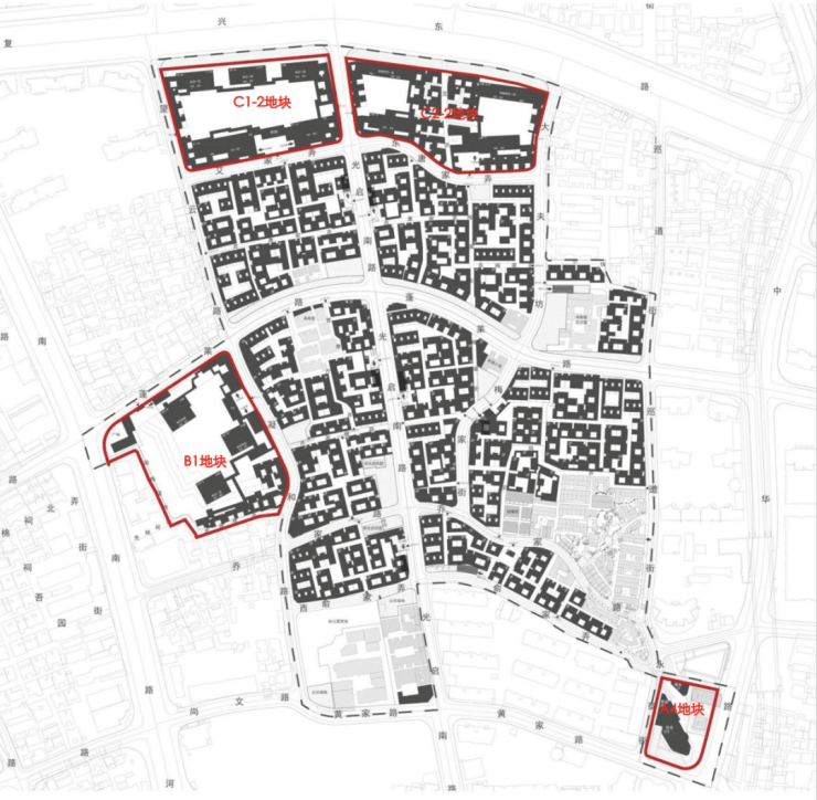 整个乔家路地块由于规模较大,总体方案设计范围:东至中华路,南至黄家路,西至河南南路,北至复兴东路,用地面积约 24.11公顷 。