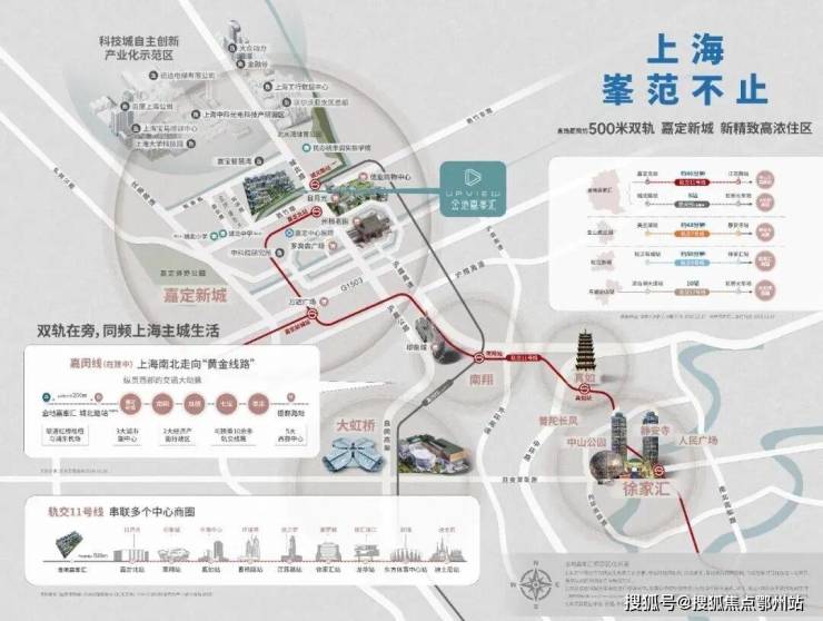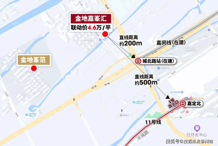 项目与嘉闵线(在建)城北路站直线距离约200米,与11号线嘉定北站直线距离约500米,皆在步行可达的范围内。