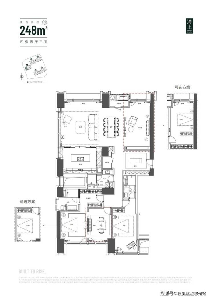 约138-198㎡大三房和定制化248㎡大四房,大师设计户型+国际品牌精装,可以根据家庭结构的变化,自行改造室内空间布局。