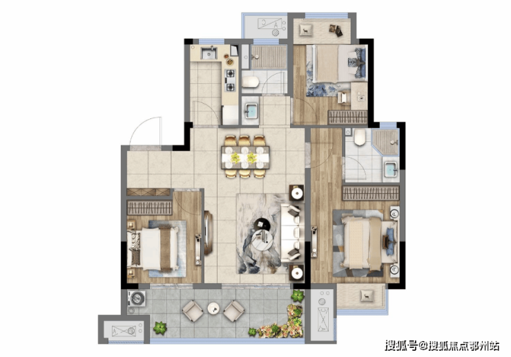 而爱情·山河万物这套建面约97m²的三房两厅两卫的户型,做到了非常好的平衡, 玄关入户可以保护好房主隐私两个卫生的设计避免了早晚高峰时排队洗漱的等待,主卧套房设计也让男女主人的日常起居更有私密性。