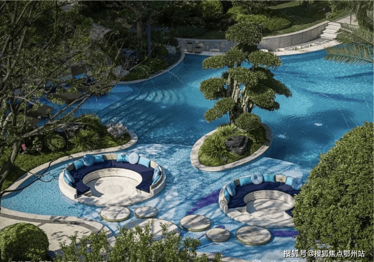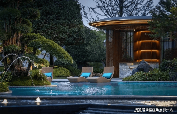 景观由GTS 蓝颂设计宋淑華大师团队操刀设计,从顶奢品牌宝诗龙 Plume de Paon 孔雀羽中汲取“高贵永恒”的绚烂灵感,雕琢奢美之境。将运河人文与当代景观交融,一园双贵,铺卷杭州的大地艺术。