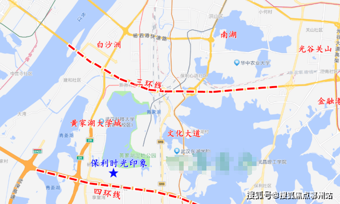 保利时光印象位于江夏区豹子山街以北,黄家湖南岸豹子山公园旁,楼市上属于军运村黄家湖板块,行政划分属于江夏区。距离三环线约5.9公里,属于三环外。