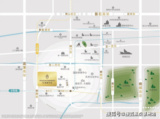 立体交通:黄金十字中轴,绿汀路TOD。枫揽华庭位于绿汀路、文二西路、文一西路、运溪高架等交通干道交汇处,交通便捷。同时,地铁5、16、3号线三站换乘,直线距离约600米,为业主提供便捷的出行选择。