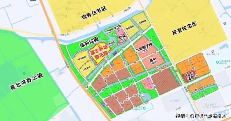 嘉定新城御花园容积率低至1.74,整个项目 四面环水,两面紧邻绿化&规划公园 ,南面是天然河道鸡鸣塘,北面紧邻练祁公园,西面更有嘉北郊野公园。