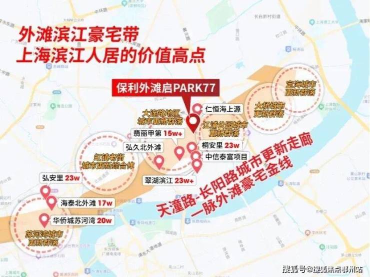 保利外滩启PARK77身处长阳路之上,向西望向大连路科创总部&豪宅集群,向东即为环江浦公园豪宅带。是这条黄金横轴上, 既能回望历史又能眺望未来的关键坐标。