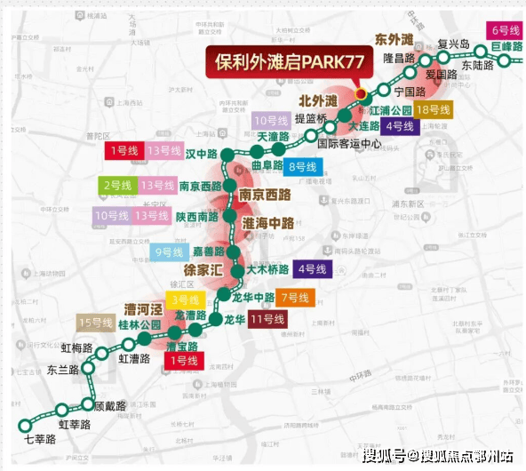 据统计,2025年上海内环的全新盘供应中,双轨地铁上盖的项目至今为止尚未出现;即使是老盘加推也仅有两盘。保利外滩启PARK77, 恰好占据12号线与18号线的交汇站点,成为少数能让地铁与社区无缝衔接项目。