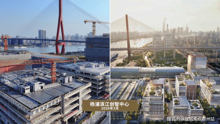 中节能上海首座、美团上海科技中心/杨浦滨江创智中心、哔哩哔哩新时代产业园(施工进度实景-未来效果图)