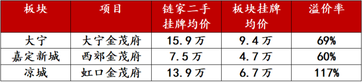 二手房市场的价格,往往是一个项目最真实的市场价值标准。在有金茂府的板块,中介会习惯性的用“金茂府的价格是…,板块的价格是…”的表述方式。从链家网可以看到,金茂府与同板块二手房相比,挂牌均价比板块均价高出50%以上,最高溢价甚至突破100%!