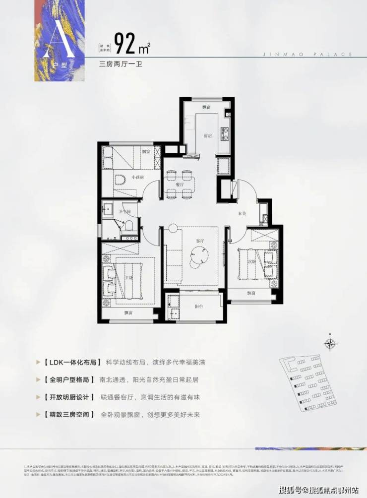 建面约92㎡3房2厅1卫