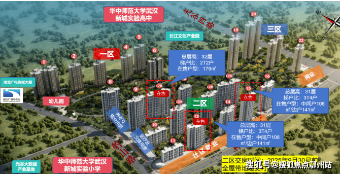 西边是小学、南面是初中、北面就是高中,长江广电光谷家简直是被华师系小学、初中、高中包围,且距离非常近!