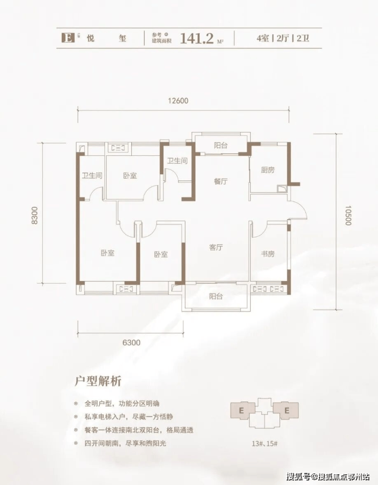户型方正,四开间朝南,12.6米大面宽设计,极致通风采光,南北双阳台直接对流,空气置换效率高,功能性强,利用率高,发挥到极致了!