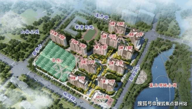 建筑指标:占地面积 255000 平方米,建筑面积 511500 平方米,容积率 2.0,绿化率 32%,总户数 1273 户,建筑类型为高层和合院别墅。