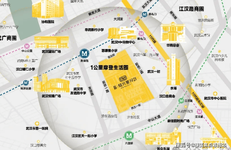 ● 商业方面 ,项目紧邻江汉路、民众乐园、M+购物中心、武商MALL、恒隆、K11等大型商圈。步行可达百年商业老街江汉路,周边民众乐园、中心百货、水塔等武汉商业名片环绕,出门即享繁华都市生活圈。