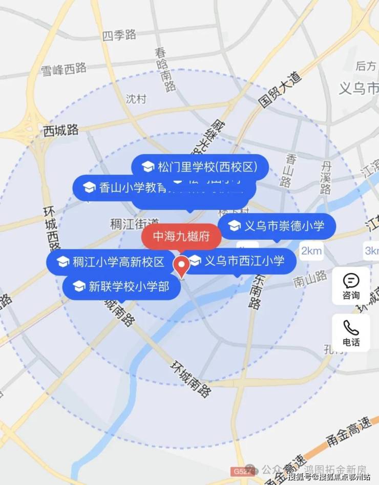 立体路网:四横(贝村路、国贸大道等)三纵(经发大道、新科路等)一轨(金义轻轨S1线稠江站),无缝接驳全城