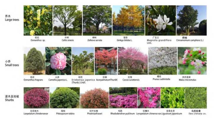 四季更迭的景观植被巧妙布局, 共有20多种乔木、小乔、灌木等植物种类,营造出“四季有色”的美妙景象。