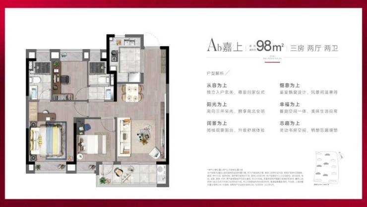 产品方面,项目 主推建面约88-98㎡精装3房, 功能性和品质感兼具。