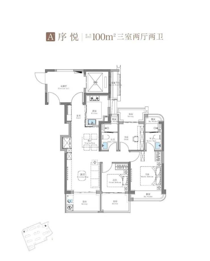 建面约115㎡3房2卫只有二期才会有